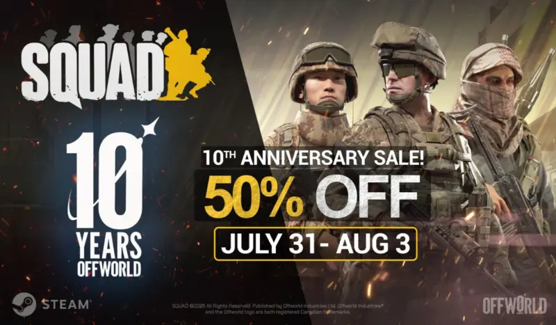 Offworld Anniversary ke-10 merayakan eksistensinya sebagai salah satu studio game independen terkemuka di Kanada. Berawal dari sekelompok pengembang yang sukses menciptakan mod Project Reality untuk Battlefield 2, kini Offworld telah berkembang menjadi studio yang dikenal secara global lewat karya-karya FPS taktis seperti Squad.