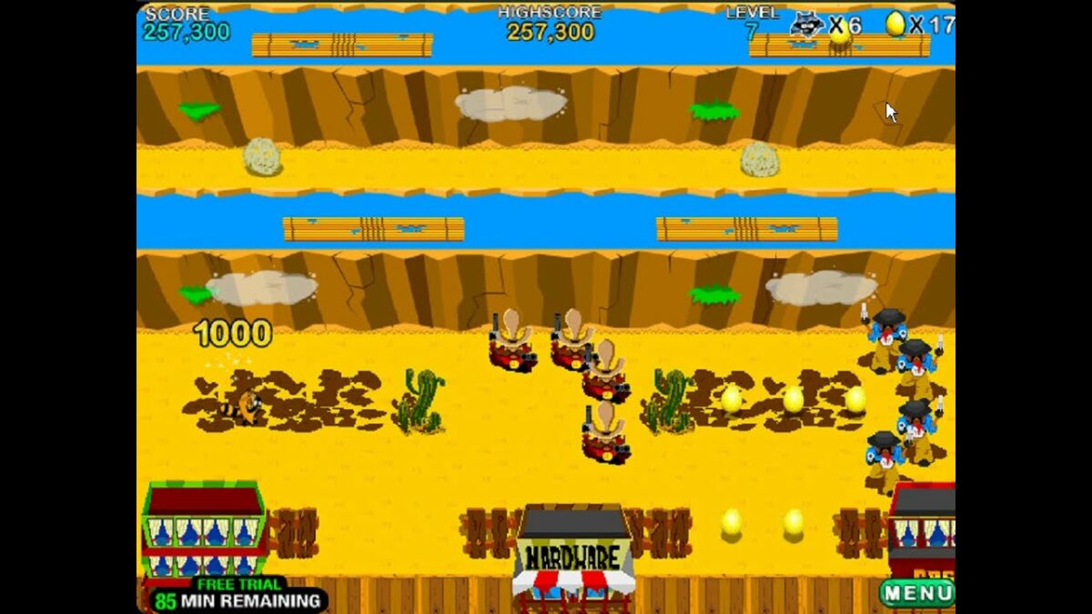 Yang pertama ada Varmintz Deluxe. Game ini adalah salah satu game dari GameHouse dengan gameplay yang lumayan seru. Kita akan bermain sebagai 5 ekor rakun serangkai yang mencuri telur dan harus membawanya dengan selamat hingga sampai ke portal di seberang sungai. Game ini sampai sekarang masih ada dan tetap mempertahankan grafik dan gameplay yang sederhana.