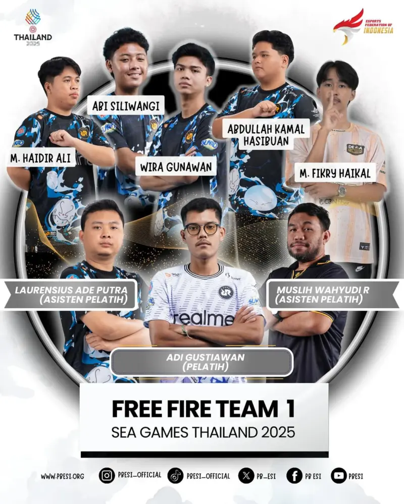 PB ESI (Pengurus Besar Esports Indonesia) kembali mengumumkan bahwa roster Timnas Free Fire Indonesia akan tampil di SEA Games 2025 yang diadakan di Thailand.