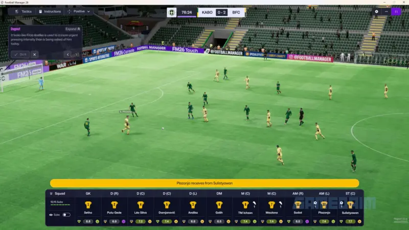 Disconnect antara apa yang terlihat di layar dengan apa yang terjadi dalam perhitungan engine ini sangat mengganggu immersion. Ketika melihat bola jelas-jelas melewati defender tetapi game menganggap itu sebagai blocked pass, atau sebaliknya, kepercayaan terhadap match engine menjadi berkurang. Penulis mulai bertanya-tanya apakah keputusan taktis benar-benar berpengaruh, atau apakah hasil pertandingan lebih banyak ditentukan oleh quirks dan inconsistensi dari engine.
