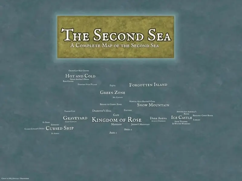 | Kerajaan Mawar | Tingkat 700 | Kalahkan Raiders, Mercs, dan Jeremy | Diamond dan Jeremy | Tepat saat memasuki Map Second Sea |