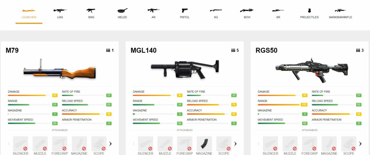 Ada 3 senjata kategori launcher yang memiliki akuarasi yang tinggi yaitu: